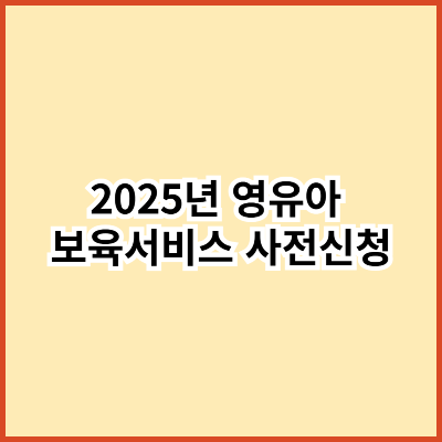 이번 글에서는 **2025년 영유아 보육서비스(보육료, 유아학비, 양육수당)**에 대한 사전신청 정보와 신청 방법을 안내합니다.