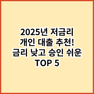 급하게 돈이 필요하지만 높은 금리 때문에 고민이신가요? 2025년 현재, 다양한 금융기관에서 저금리 개인 대출 상품을 제공하고 있습니다. 이번 포스팅에서는 승인이 쉽고, 금리가 낮은 대출 상품 TOP 5를 소개합니다. 각 상품의 특징과 혜택을 비교하여 본인에게 가장 적합한 대출을 선택하세요.